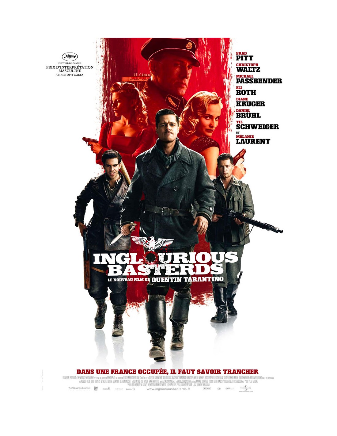 Palme d'or du meilleur film à Cannes 2009, Inglourious Basterds reste l'un des plus grands succès publics et critiques de Tarantino, avec au générique Brad Pitt, Christoph Waltz (César et Oscar du meilleur acteur dans un second rôle), Mélanie Laurent, Michael Fassbender et Diane Kruger.