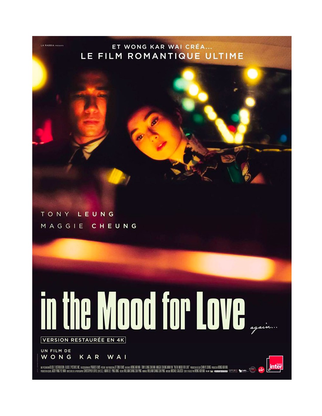 L'une des affiches les plus convoitées du cinéma asiatique contemporain. Affiche ressortie de In the Mood for Love (花樣年華), drame romantique de 2000 réalisé par Wong Kar-wai, coproduction franco-hongkongaise avec Tony Leung Chiu-wai et Maggie Cheung dans les rôles principaux. Format 40x53 cm environ, conditionnement roulé, état très bon. Affiche française de ressortie, au graphisme épuré caractéristique de l'esthétique visuelle envoûtante du film — dominantes chaudes, composition intimiste — qui en fait un objet décoratif autant que de collection.