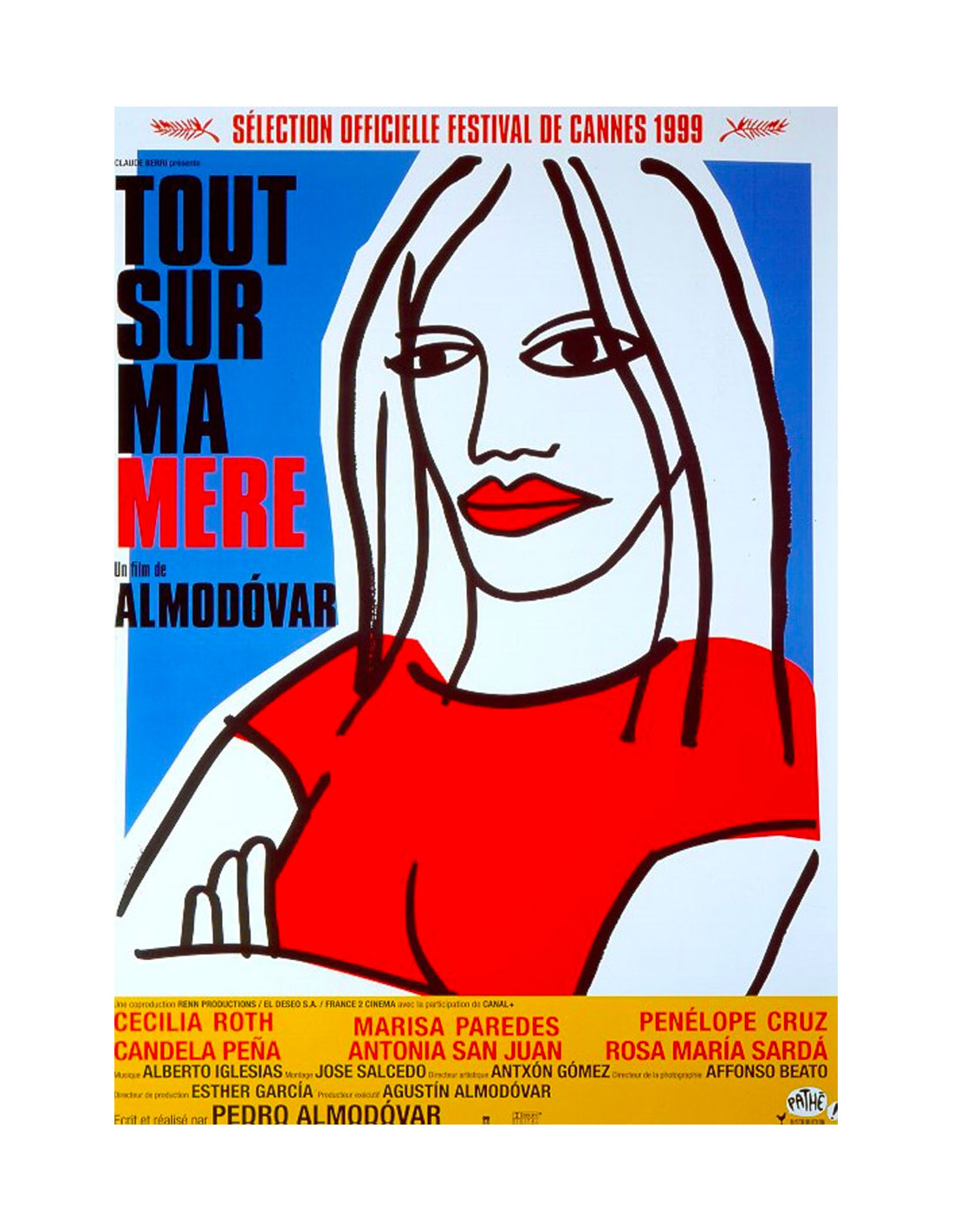 Un chef-d'œuvre du cinéma mondial disponible en affiche originale française de sortie. Affiche originale de Tout sur ma mère, film drame hispano-français de 1999 écrit et réalisé par Pedro Almodóvar, avec Cecilia Roth, Marisa Paredes, Penélope Cruz, Antonia San Juan et Candela Peña.