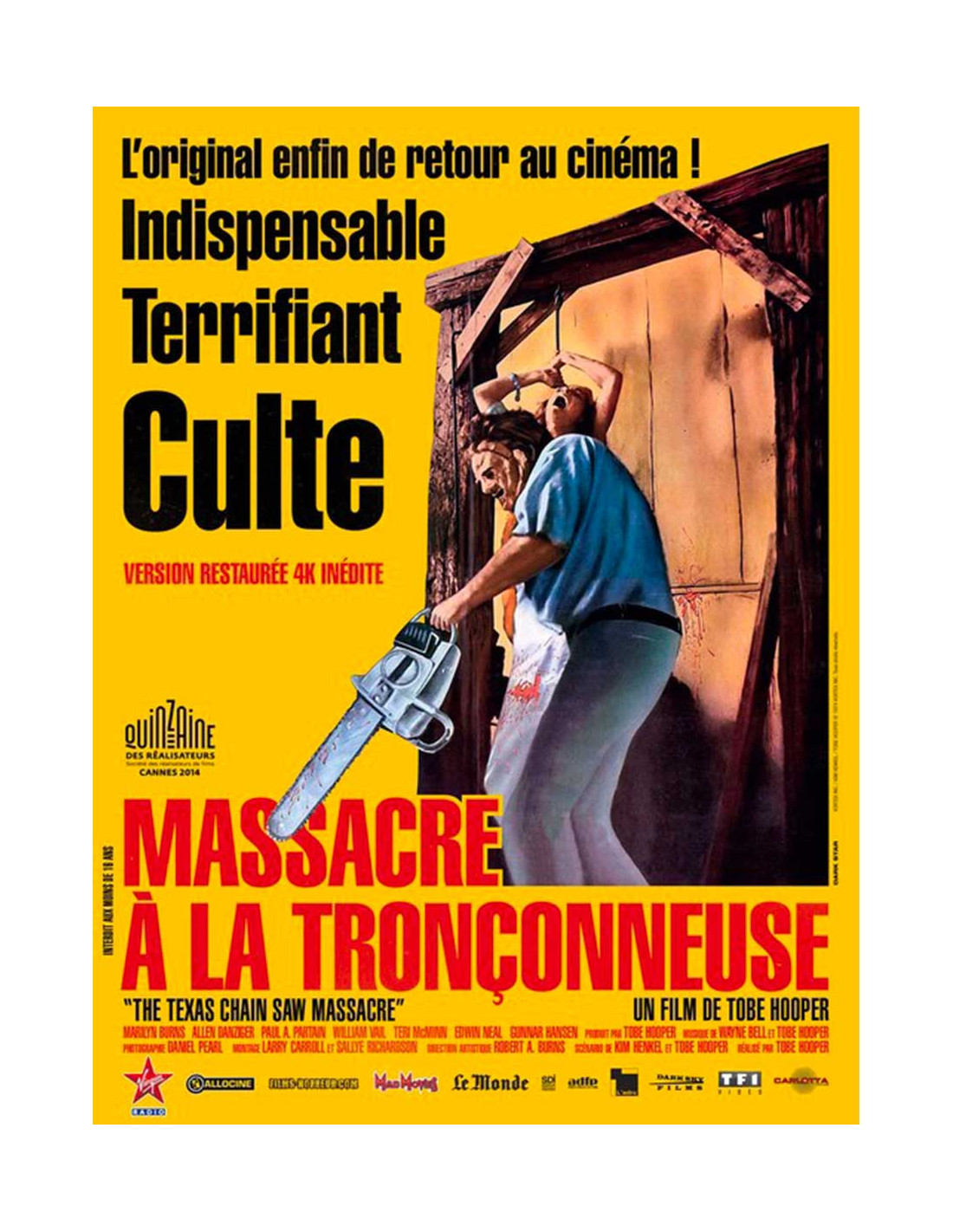 Œuvre fondatrice du slasher américain, Massacre à la Tronçonneuse a influencé des décennies de cinéma de genre et reste une référence absolue pour les collectionneurs. Cette ressortie permet d'acquérir une affiche officielle en parfait état, là où les exemplaires d'époque — bien plus rares — s'arrachent à prix d'or.