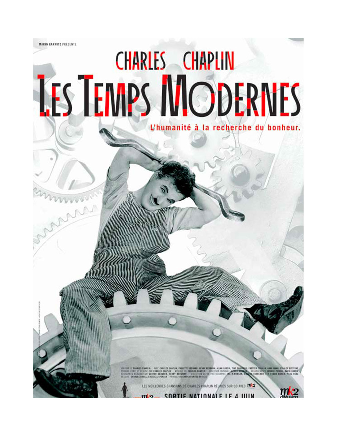 Charlot contre la machine — une image devenue symbole universel de la modernité et de la condition ouvrière. Affiche originale de Les Temps Modernes, film comique et social réalisé par Charlie Chaplin, sorti en 1936 aux États-Unis. Format 40x53 cm environ conditionnement roulé, état excellent. Affiche de ressortie française, illustrée du célèbre visuel de Charlot happé par les engrenages d'une usine géante — composition graphique immédiatement reconnaissable, devenue l'une des images les plus reproduites de l'histoire du cinéma.