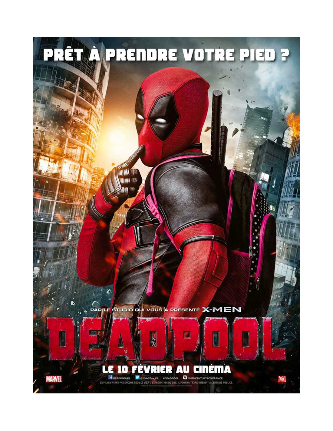 L'affiche reprend la composition iconique du personnage masqué en costume rouge, devenue l'une des visuels les plus reconnaissables de la franchise Marvel. Avec plus de 780 millions de dollars de recettes mondiales, Deadpool a marqué un tournant dans le genre super-héroïque en assumant pleinement son ton adulte et humoristique.