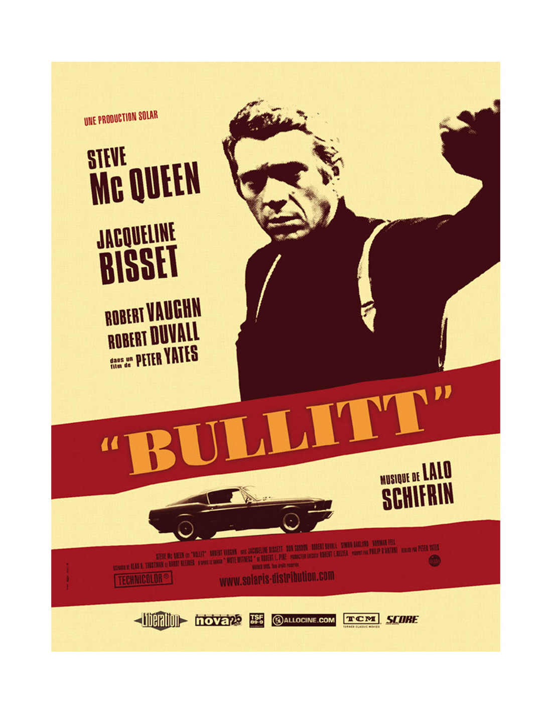 Affiche originale de Bullitt, film policier américain de 1968 réalisé par Peter Yates, avec Steve McQueen, Jacqueline Bisset et Robert Vaughn. Format 40×53 cm, conditionnement roulé, état neuf. Il s'agit de l'affiche éditée à l'occasion de la ressortie française de 2006