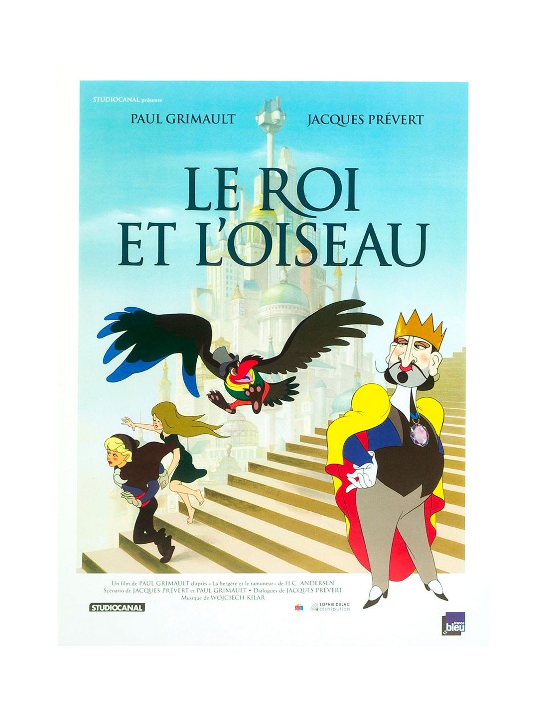 Une pièce incontournable pour tout amateur d'animation française et de cinéma d'auteur. Affiche originale de Le Roi et l'Oiseau, film d'animation de Paul Grimault, librement inspiré du conte La Bergère et le Ramoneur de Hans Christian Andersen, sur un scénario et des dialogues de Jacques Prévert — une collaboration légendaire dont l'histoire mouvementée s'étend de 1952 à la version définitive de 1980.