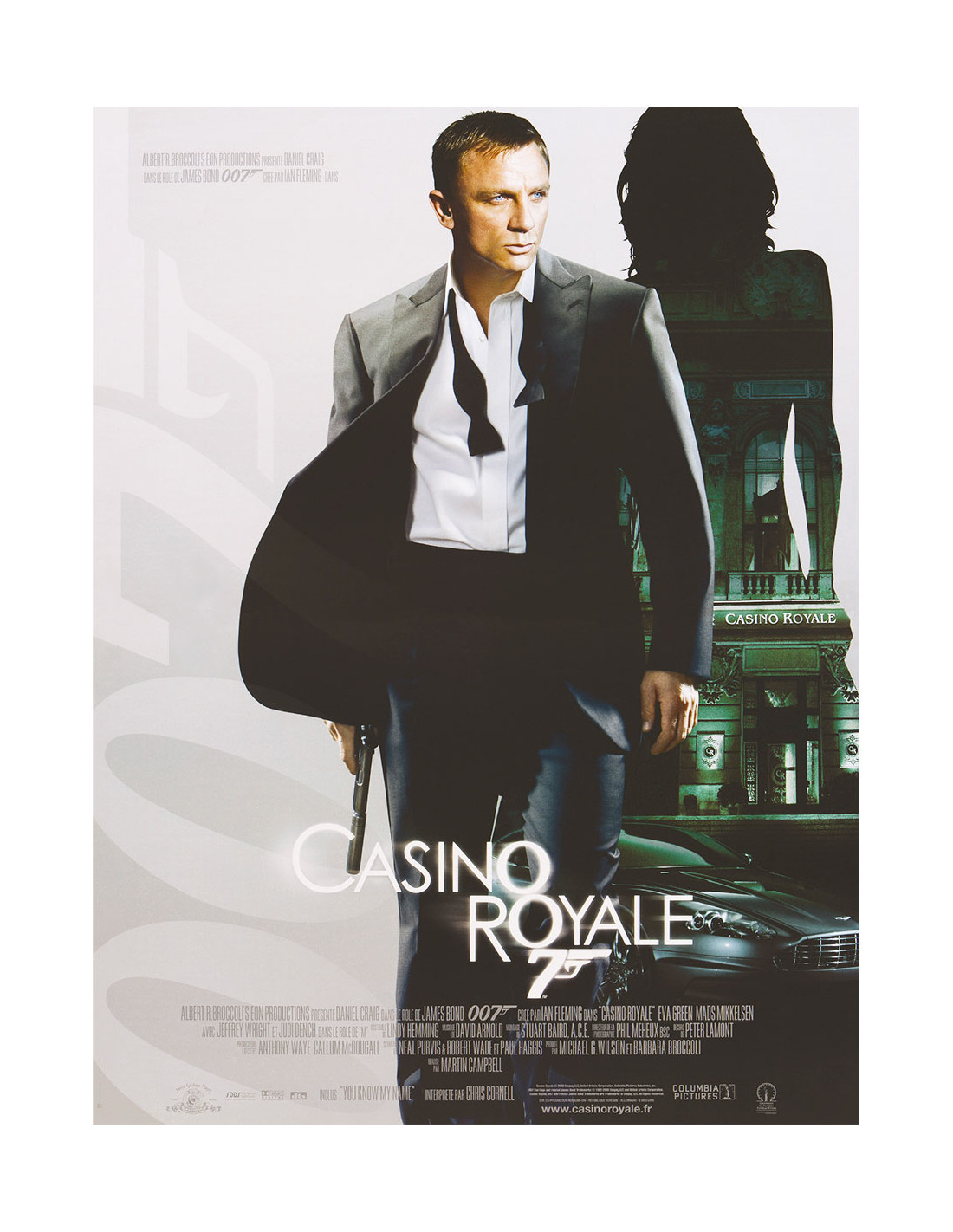 L'affiche qui a marqué le grand retour de James Bond à ses origines. Affiche originale de Casino Royale, film d'espionnage de 2006 réalisé par Martin Campbell, avec Daniel Craig dans son premier rôle de 007, aux côtés d'Eva Green et Mads Mikkelsen. Format 40×53 cm, conditionnement roulée, état très bon. Édition française, distribuée lors de la sortie nationale du 22 novembre 2006 — le visuel iconique présente Daniel Craig en smoking, arme au poing, dans la composition graphique épurée caractéristique de cette affiche. Jalon incontournable dans l'histoire de la franchise Bond, ce film constitue le 21ᵉ opus officiel des productions EON et marque le début du cycle Daniel Craig — cinq films qui ont totalement redéfini l'image de l'agent secret britannique. Premier volet d'un reboot assumé, Casino Royale a réuni plus de 3 millions d'entrées en France, ce qui en fait l'un des événements cinématographiques majeurs de l'année. Une pièce de choix pour tout collectionneur de la saga 007 ou de l'affiche de cinéma britannique des années 2000.