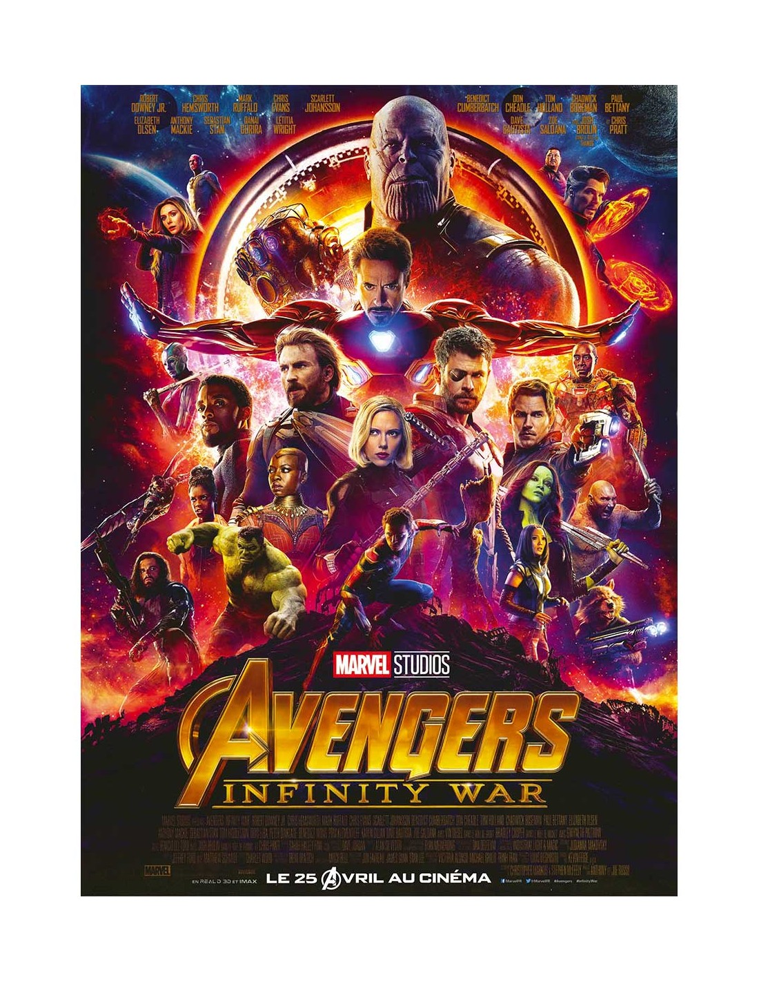 Le visuel rassemble un casting exceptionnel autour de la figure centrale de Thanos : Robert Downey Jr. (Iron Man), Chris Evans (Captain America), Chris Hemsworth (Thor), Scarlett Johansson (Black Widow) et Josh Brolin dans le rôle du grand vilain, parmi une vingtaine de super-héros de l'univers Marvel.