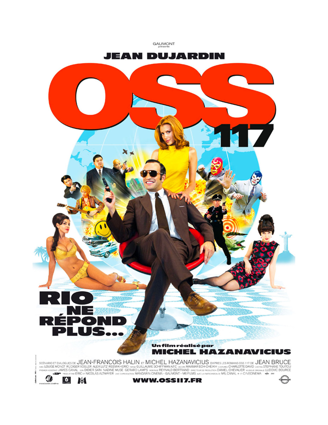 L'agent le plus inconscient du contre-espionnage français s'affiche chez vous. Affiche originale de OSS 117 : Rio ne répond plus, comédie d'espionnage française de 2009 réalisée par Michel Hazanavicius, avec Jean Dujardin dans le rôle mythique d'Hubert Bonisseur de La Bath. Format 40x53 cm environ, conditionnement roulée, état neuf. Affiche française d'exploitation, éditée pour la sortie en salle du film, arborant le visuel iconique du deuxième volet de la trilogie — Jean Dujardin en agent secret parodique sur fond brésilien aux couleurs pop années 1960.